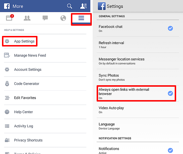 Ինչպես անջատել Անդրոիդ համակարգի Ֆեյսբուք հավելվածի ներքին ինտերնետ դիտարկիչը