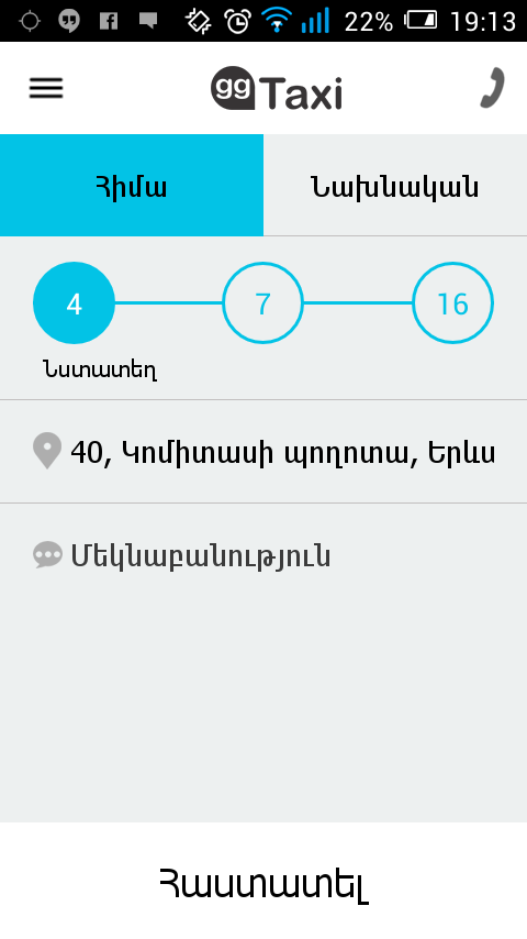 Պատվիրեք տաքսի ու հետևեք պատվերի ընթացքին ggTaxi-ի միջոցով