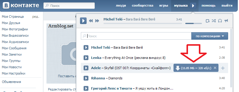 Գոյություն ունի մի հավելված, որը խորհուրդ կտամ տեղադրել ինտերնետ դիտարկիչների վրա: Այդ հավելվածը կոչվում է SaveFromNet և թույլ է տալիս ներբեռնել աուդիո/վիդեո ֆայլեր Odnoklassniki, Vkontakte, Youtube և այլ կայքերից: Հավելվածը տեղադրելուց հետո երգի կամ տեսահոլովակի մոտ հայտնվում է ներբեռնելու կոճակ: Ահա, թե ինչ տեսք ունեն այդ կոճակները տարբեր կայքերում`